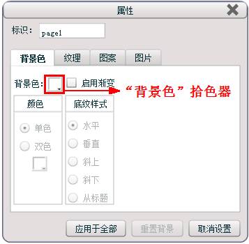在“属性”框中,选中“背景色”选项卡,如下图: