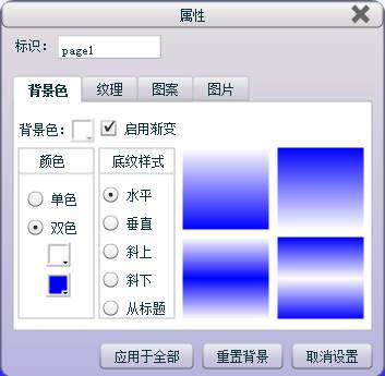 在“背景色”选项卡中,选中“启用渐变”选项后可以给页面添加渐变效果。