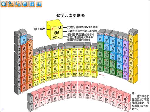 化学元素周期表工具提供立体周期表形式,针对元素查询、活动性、族、周期、元素分类及相关知识等方面对化学元素周期表进行展示及学习。