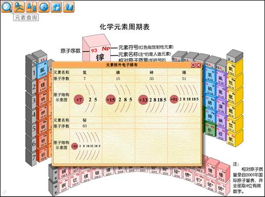 图标,进行元素查询,可从元素位置、原子序数、元素符号和元素名称四个方面进行元素的查询。例如对原子序数为11的钠元素的查询,可以通过下拉条用鼠标点击数字“11”也可通过手动输入数字“11”然后按回车键实现。