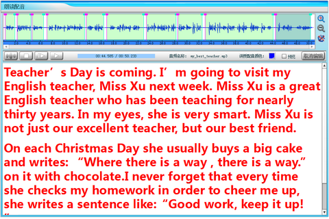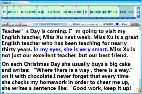 朗读配音工具可构建出能够进行文字与声音同步播放的课件或学件,并且可在播放的过程中对句子,段落的朗读进行个性化选择。