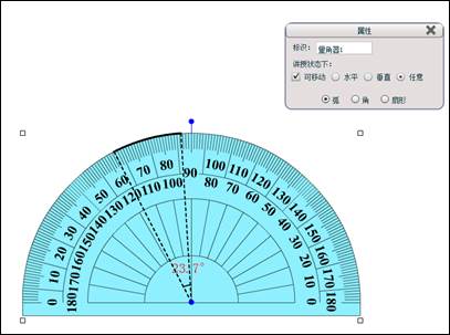单击“量角器”按钮,即可插入量角器工具,可以方便地测量角度。