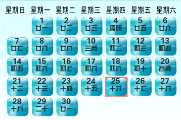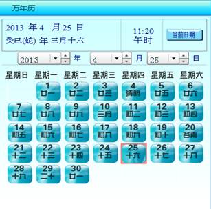 ③点击日历中的具体日期,红色方块标识当前选定的日期。也可以点击“当前时期”按钮,回到现在的时间。