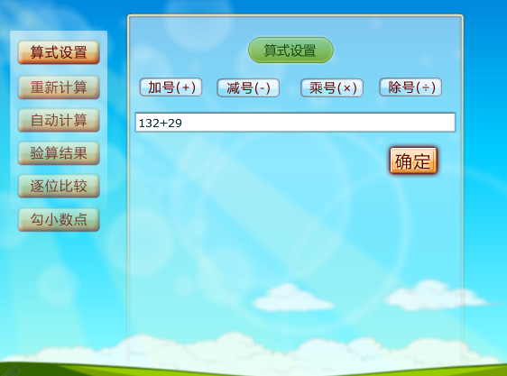 在首页输入框中设置算式,点击“确定”后进入竖式计算界面。