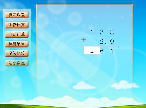 竖式计算训练工具可设置四则运算题目,演示其竖式计算过程,进行探究式训练、验算结果。