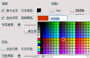 ,弹出颜色对话框,根据需要选择合适的笔画闪烁颜色,默认为红色。