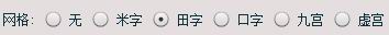 来设置汉字展示区域的网格类型,包括“无”(没有网格)、“米字”(米字格)、“田字”(田字格)、“口字”(口字格)、“九宫”(九宫格)和“虚宫”(虚宫格)六个选项,效果如下图所示: